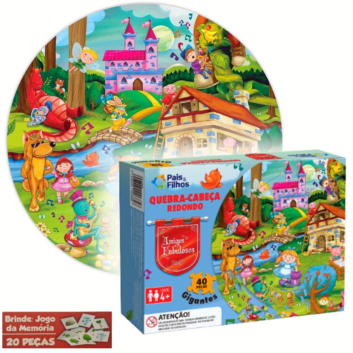 Quebra cabeça Redondo com linda paisagem dos Amigos Fabulosos com 40 peças em cartonado de otima qualidade. Com um design inovador e cores vibrantes, este quebra cabeça proporciona a sensação de superação quando se consegue montar. As cores podem até ajudar, mas o grande segredo está no desenho das peças. Desafie-se!